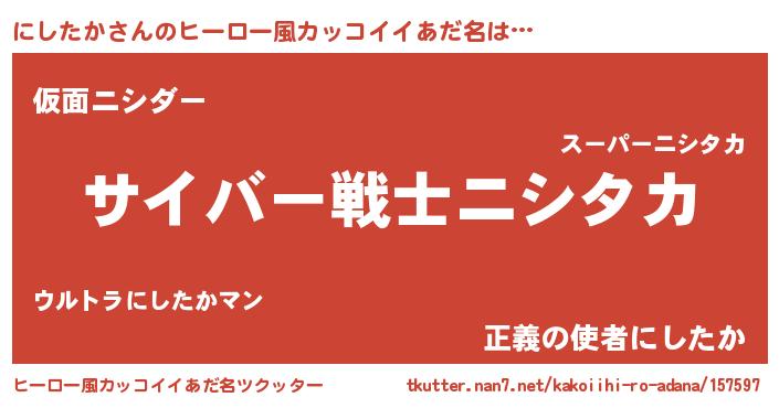 | 男性向けラノベタイトル風あだ名 | 『にしたかに滅ぼされるだけの簡単なお仕事です』 |