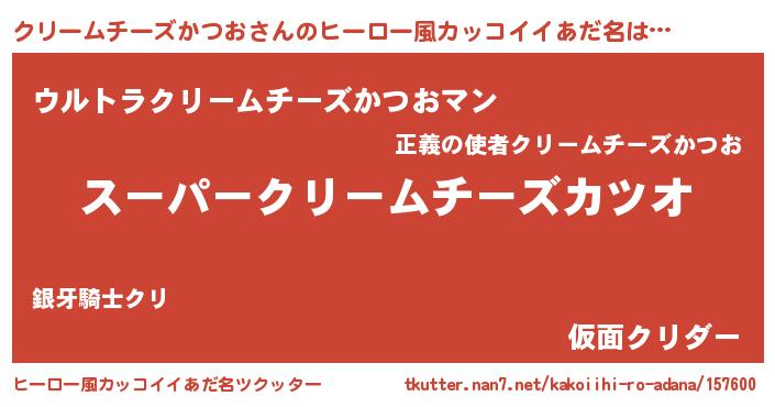 | 男性向けラノベタイトル風あだ名 | 『クリームチーズカツオスレイヤー』 |