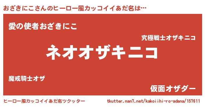 | 男性向けラノベタイトル風あだ名 | 『オザキニコスレイヤー』 |