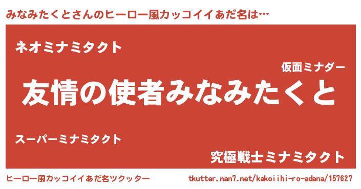 | ヘコむあだ名 | 『みなみたくと(震え声)』『みなふぇ~』 |