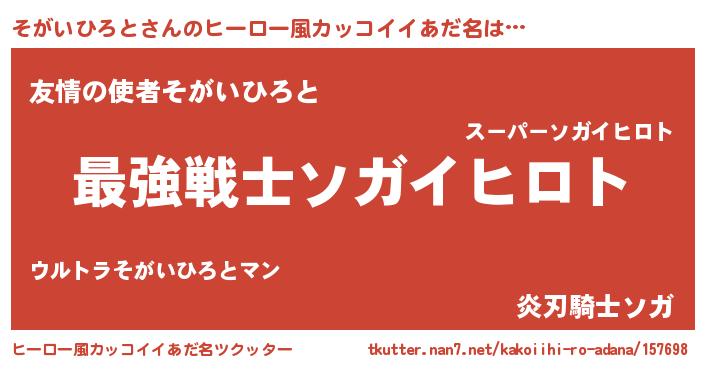 | 男性向けラノベタイトル風あだ名 | 『Re:そがいひろとから始める異世界生活』 |