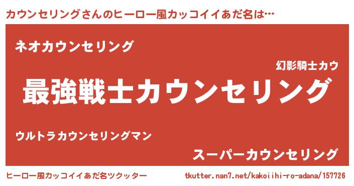 | 男性向けラノベタイトル風あだ名 | 『カウンセリングに滅ぼされるだけの簡単なお仕事です』 |