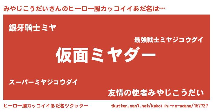 | 女子向けラノベタイトル風あだ名 | 『みやじこうだいが死なない童話 林檎のみやじこうだいの診療簿』 |