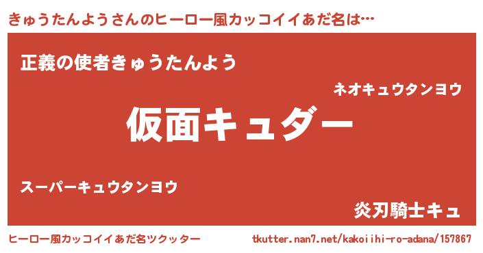 | 男性向けラノベタイトル風あだ名 | 『魔弾の王ときゅうたんよう』 |