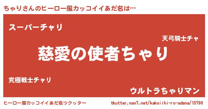 ちゃりさんのヒーロー風カッコイイあだ名をツクッター!