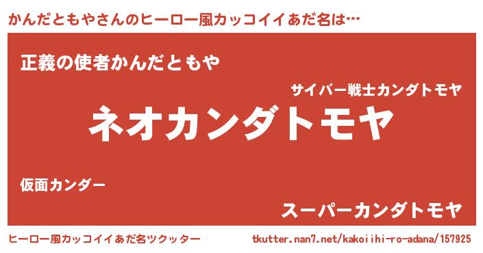 | 胡散臭い通販商品みたいなあだ名 | 『絶対に幸福をもたらす水素水…その名も「かんだともや」』 |