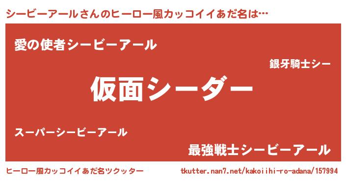 | 男性向けラノベタイトル風あだ名 | 『シービーアール~年齢イコール彼女いない歴の魔法使い~』 |