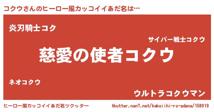 | 伝説のあだ名 | 『救世主となる錬金術士コクウ』 |