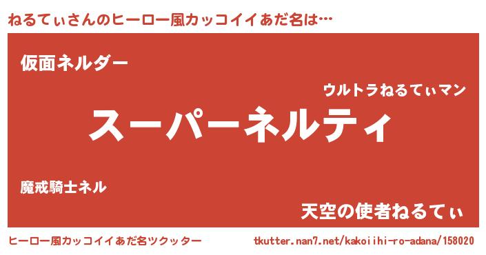 ねるてぃさんのヒーロー風カッコイイあだ名をツクッター!