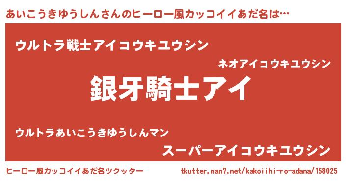 | ポケモン風あだ名 | 『ヒアイコウキユウシン』『アイセウス』 |