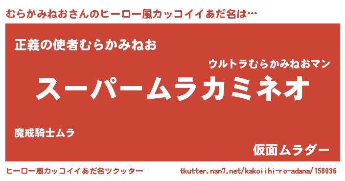 | 胡散臭い通販商品みたいなあだ名 | 『モテモテ間違いなし霊験あらたかなお札…その名も「むらかみねお」』 |