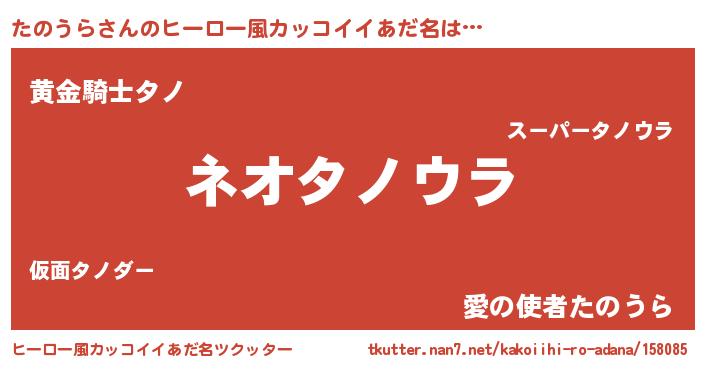 | 男性向けラノベタイトル風あだ名 | 『たのうらという概念が存在しない退屈な世界 』 |
