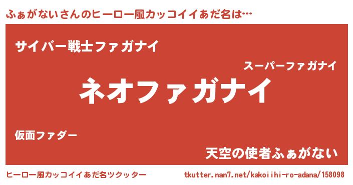 | 胡散臭い通販商品みたいなあだ名 | 『絶対に幸福をもたらす健康食品…その名も「ふぁがない」』 |