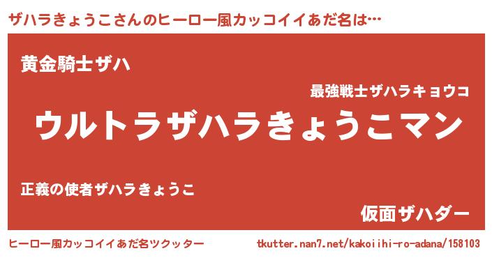 | 意味不明あだ名 | 『ザハラきょうこフォーエバー』 |