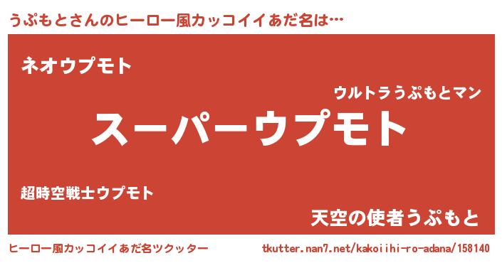 | 男性向けラノベタイトル風あだ名 | 『緋弾のウプモト』 |
