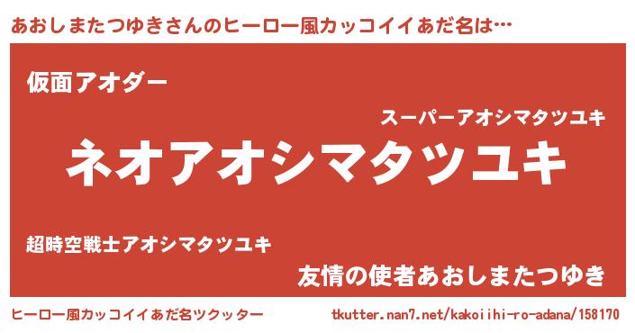 | 男性向けラノベタイトル風あだ名 | 『転生したらあおしまたつゆきだった件』 |