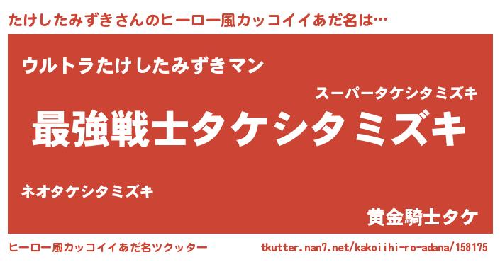 | 男性向けラノベタイトル風あだ名 | 『Re:たけしたみずきから始める異世界生活』 |