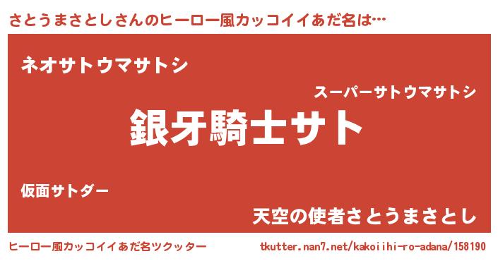 | ヘコむあだ名 | 『さと太郎』『さとうまさとし(笑)』 |