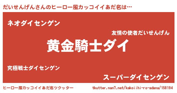 | 胡散臭い通販商品みたいなあだ名 | 『信頼と実績のサプリメント…その名も「だいせんげん」』 |