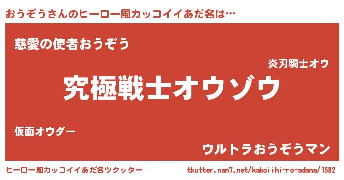 | 男性向けラノベタイトル風あだ名 | 『Re:おうぞうから始める異世界生活』 |