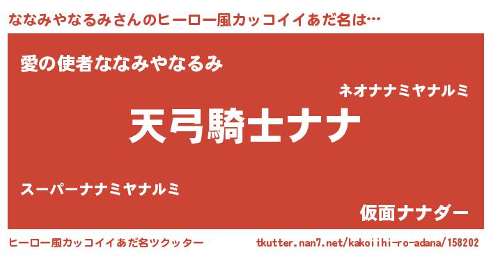 | 男性向けラノベタイトル風あだ名 | 『ななみやなるみの嫁は女の子じゃないと思った?』 |