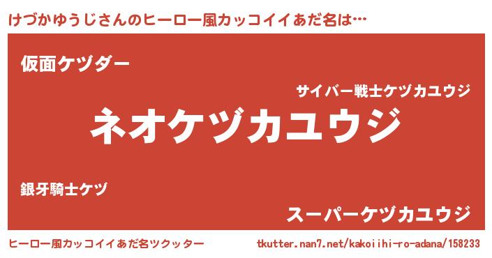 | 男性向けラノベタイトル風あだ名 | 『けづかゆうじに滅ぼされるだけの簡単なお仕事です』 |