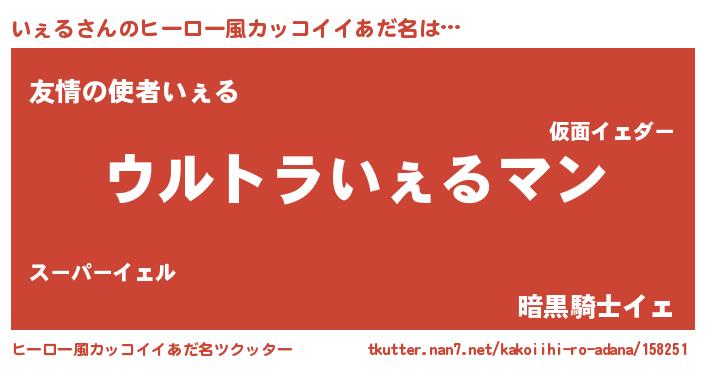 | 意味不明あだ名 | 『いぇるフォーエバー』 |