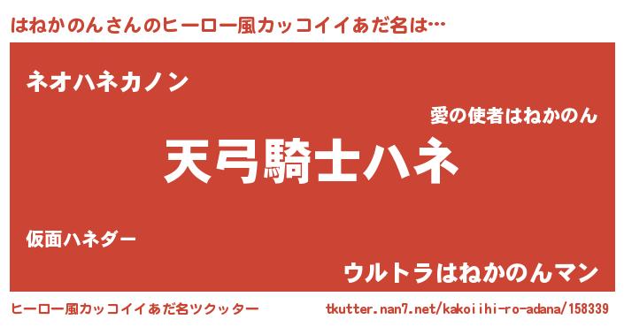 | 男性向けラノベタイトル風あだ名 | 『はねかのんの嫁は女の子じゃないと思った?』 |
