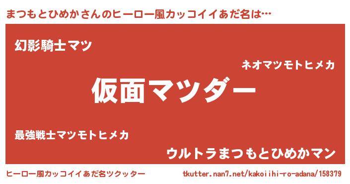 | ポケモン風あだ名 | 『マーツイ』『ヒマツモトヒメカ』 |