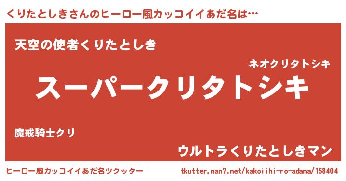 | 男性向けラノベタイトル風あだ名 | 『クリタトシキアートオンライン』 |