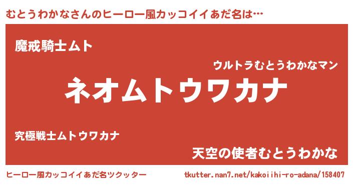 | 男性向けラノベタイトル風あだ名 | 『むとうわかなという概念が存在しない退屈な世界 』 |