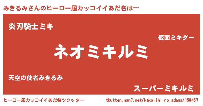 | 意味不明あだ名 | 『永久保存みきるみ』『ペロリンみきるみ』 |