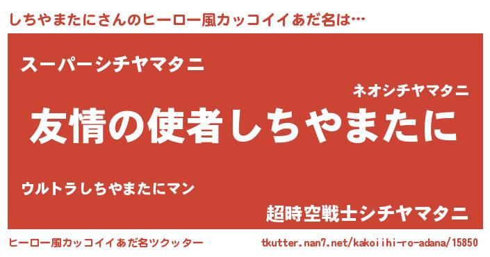 | 男性向けラノベタイトル風あだ名 | 『おまえをオタクにしてやるから、俺をしちやまたににしてくれ! 』 |