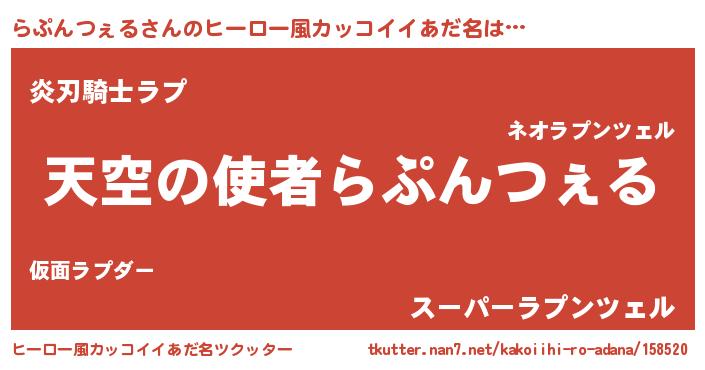 | 男性向けラノベタイトル風あだ名 | 『ノーゲーム・ノーラプンツェル』 |