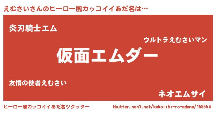 | ヘコむあだ名 | 『えむ太郎』『えむさい(震え声)』 |