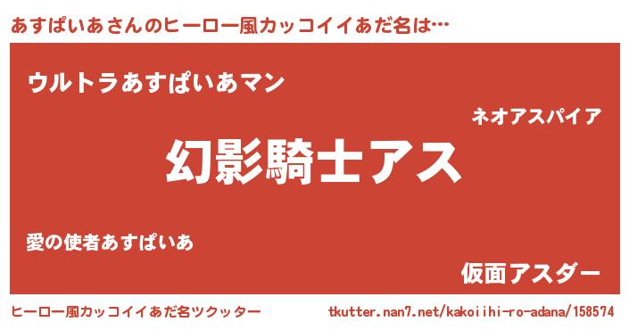 | 意味不明あだ名 | 『とにかく怪しいあすぱいあ』 |
