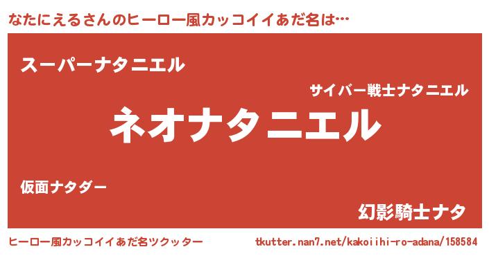 | ヘコむあだ名 | 『なたにえる(笑)』『なたにゅー』 |