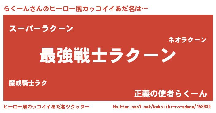 | 男性向けラノベタイトル風あだ名 | 『Re:らくーんから始める異世界生活』 |