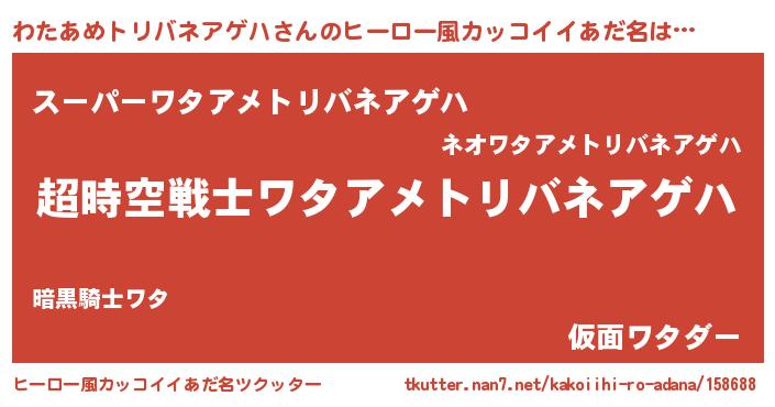 | 自動車の名前っぽいあだ名 | 『レクワス』『フェワータ』『デミワ』 |