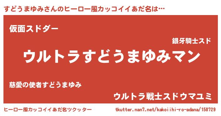 | 男性向けラノベタイトル風あだ名 | 『すどうまゆみ~年齢イコール彼女いない歴の魔法使い~』 |