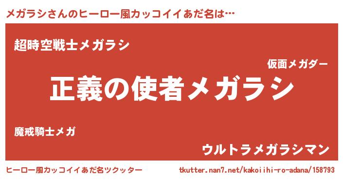 | 男性向けラノベタイトル風あだ名 | 『おまえをオタクにしてやるから、俺をメガラシにしてくれ! 』 |