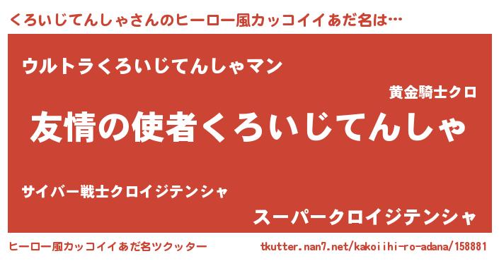 | 男性向けラノベタイトル風あだ名 | 『おまえをオタクにしてやるから、俺をくろいじてんしゃにしてくれ! 』 |