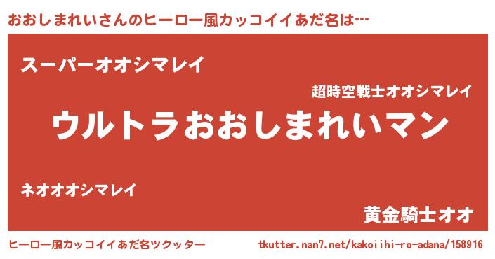 | 意味不明あだ名 | 『おおしまれいフォーエバー』 |