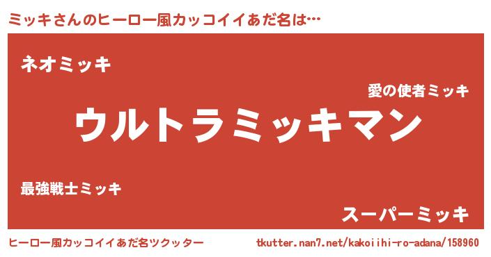 | 男性向けラノベタイトル風あだ名 | 『やはりミッキの青春ラブコメはまちがっている 』 |