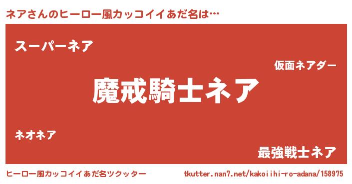 | ヘコむあだ名 | 『ネアを』『ネアふぇ~』『つくし』 |