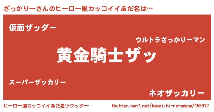 | 男性向けラノベタイトル風あだ名 | 『ダンジョンにざっかりーを求めるのは間違っているだろうか』 |