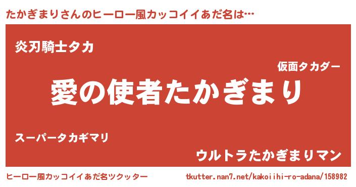 | 女子向けラノベタイトル風あだ名 | 『たかぎまり恋絵巻』 |