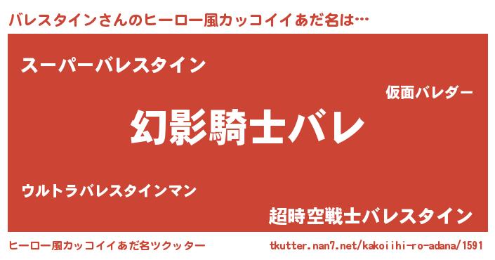 | 男性向けラノベタイトル風あだ名 | 『バレスタインの嫁は女の子じゃないと思った?』 |