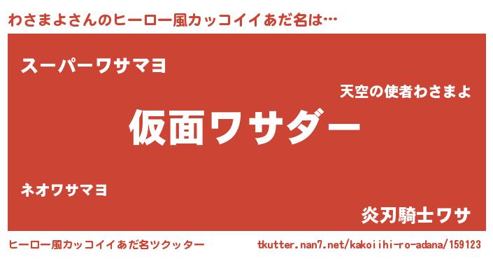 | 恥ずかしいあだ名 | 『プリティーわさまよ』『ワサリンリン』 |