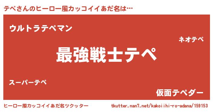 | 男性向けラノベタイトル風あだ名 | 『Re:テペから始める異世界生活』 |